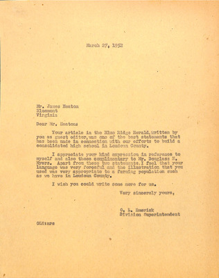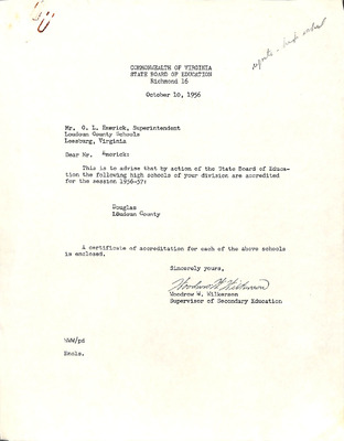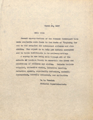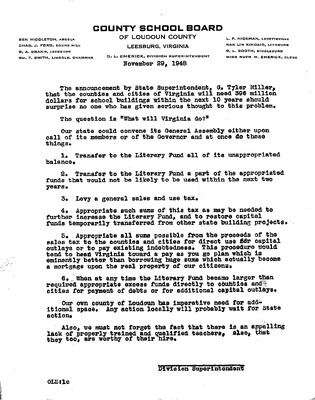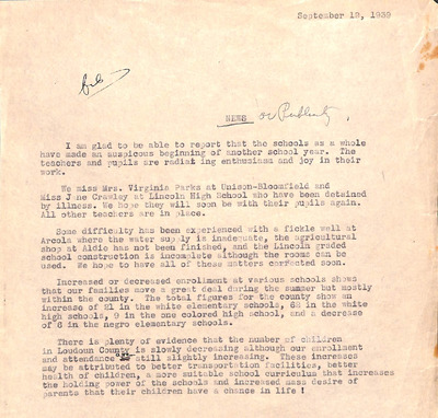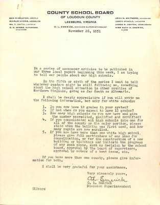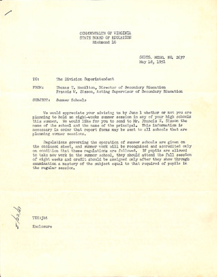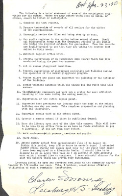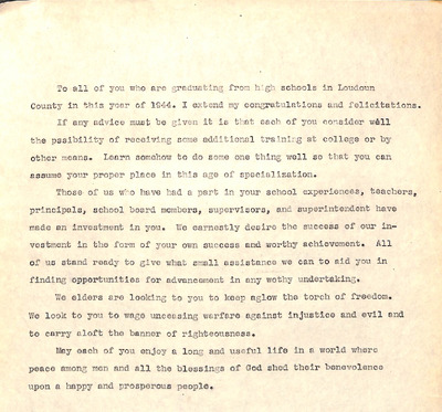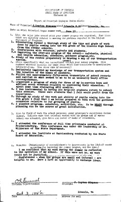 August 22, 1944 correspondence from Superintendent O.L. Emerick citing highlights of the 1944-45 school year. Highlights include: date of 1st day of school, compulsory attendance law, traffic laws around school buses while loading or unloading students, authorized school bus passengers