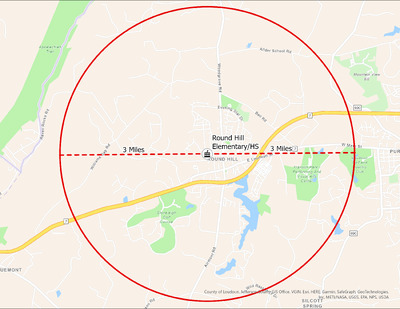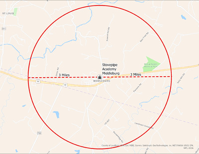 It's estimated that the maximum distance students would have walked to this school is 3 miles one way. The graphic shows the area from which students may have walked to this school.