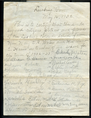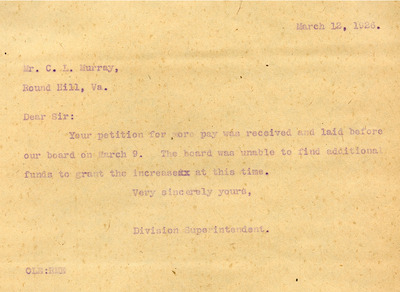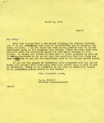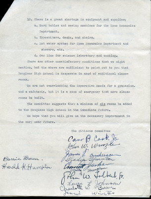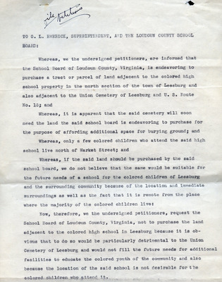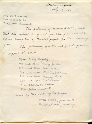 This document includes a letter of petition dated June 18, 1947, from Mrs. Gertrude Johnson, President of the Parents Teachers League, with petitioners' signatures, and a typewritten response from O.L. Emerick, Division Superintendent. In his June 20, 1947, response, Emerick states that the school board would not find it possible to honor this request, as another teacher has already been assigned.