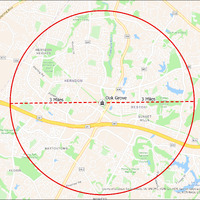 It's estimated that the maximum distance students would have walked to this school is 3 miles one way. The graphic shows the area from which students may have walked to this school.