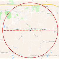 It's estimated that the maximum distance students would have walked to this school is 3 miles one way. The graphic shows the area from which students may have walked to this school.