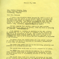 January, 1945, letter, Mildred Jackson, President, Parent Teacher Association, Middleburg, Virginia, School Board, rejection, additional school, rented room, PTA, opposition, building addition, old school, construction, new building, challenges, process, suitable lot, planning, War Production Board, costs, funds, cooperation, preparations, new building