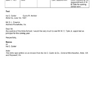 White Petition Aldie 1927 06 01 Letter re Tyler from Carter I