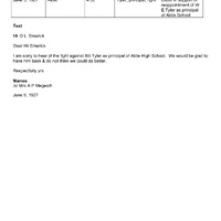 White Petition Aldie 1927 06 06 Letter re Tyler from Megeath Mrs A