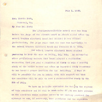 Two letters dated July 1926 between Superintendent Emerick and Harris Hart, Superintendent of Public Instruction regarding the location of the Lincoln-Purcellville High School. The issue was brought before the circuit court, which ruled that the school trustee electoral board had jurisdiction. The first letter is addressed to Superintendent Harris Hart dated July 1, 1926 from Superintendent Emerick. (missing second page.) The School Board Trustee electoral Board decided to hear the case on July 9th. The board passed a resolution requesting a committee of 3 make careful study of the matter and make recommendations regarding the school's location. It was advised this committee would have experts whose expenses were already budgeted to cover their expenses. The second letter (O.T Emerick to Harris Hart) The committee of three was made up of Mr. Combs, Mr. Smithey and Mr. Hoke. However, a memorandum report by this committee suggested the dispute was local between these two communities. This lead the Department of Education to decline involvement. (Last 2 pages are duplicate pages.)